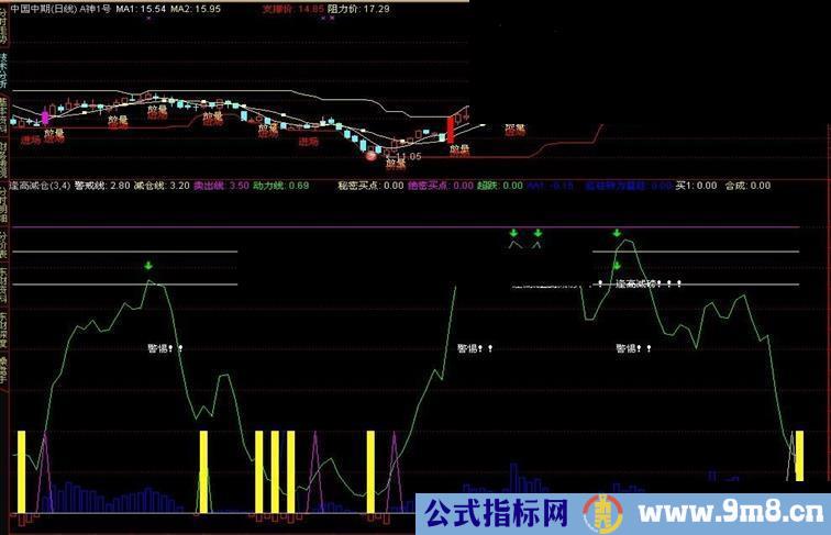 DRAWTEXT(CROSS(动力线,减仓线),2.8,'逢高减磅!!! '), ,;