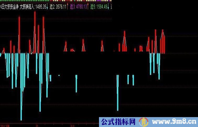 STICKLINE(大宗净流入<0,0, 大宗净流入,2,0),COLORCYAN;
