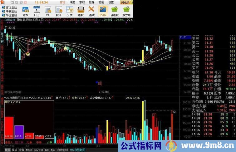 STICKLINE(C>O OR (C=O AND 买盘>卖盘),0,VOL,2.5,1),COLORRED;