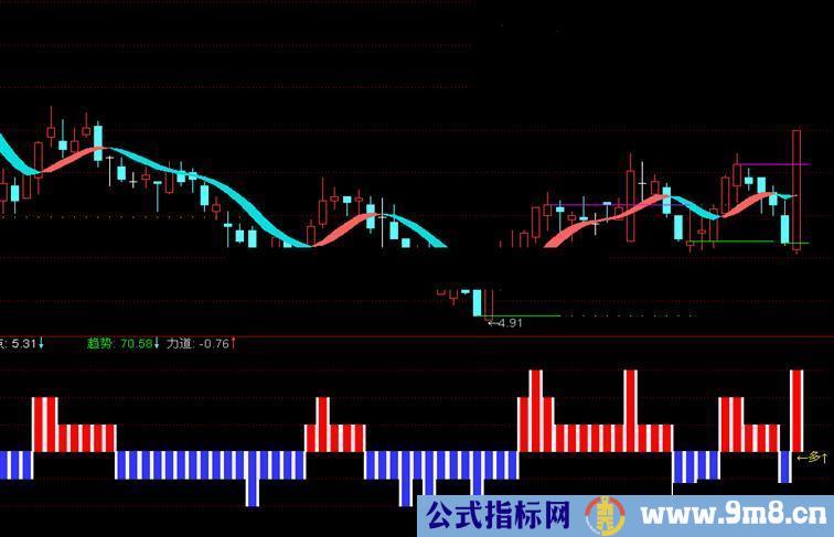 DRAWTEXT(CLOSE>=MA1 AND ISLASTBAR,1,'←多↑'),COLOR00FFFF;