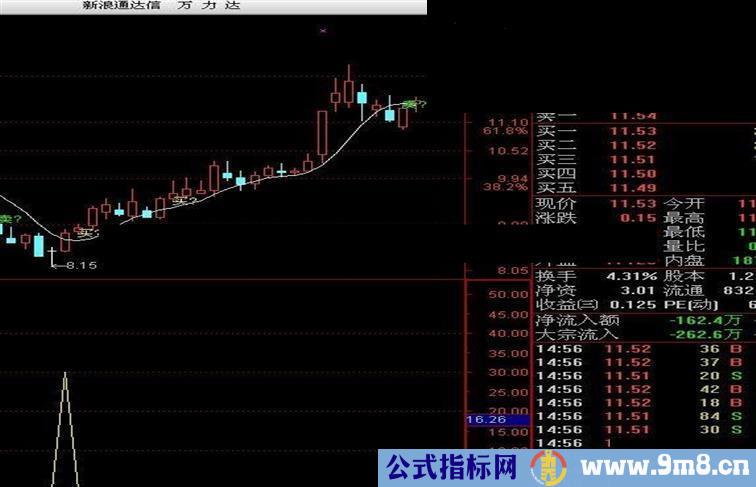 绝世金牛1:IF((A AND B AND 避开刀尖 AND COUNT(A AND B AND D,20)=1),50,0);