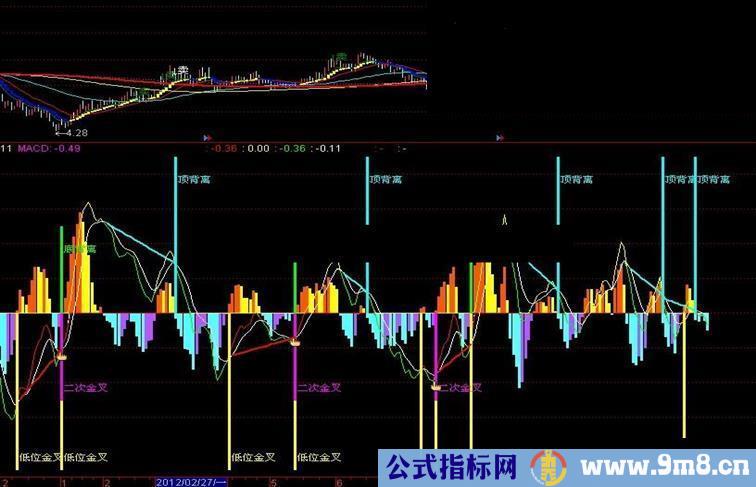 底背离:=REF(CLOSE,A1+1)>CLOSE AND DIFF>REF(DIFF,A1+1) AND CROSS(DIFF,DEA);