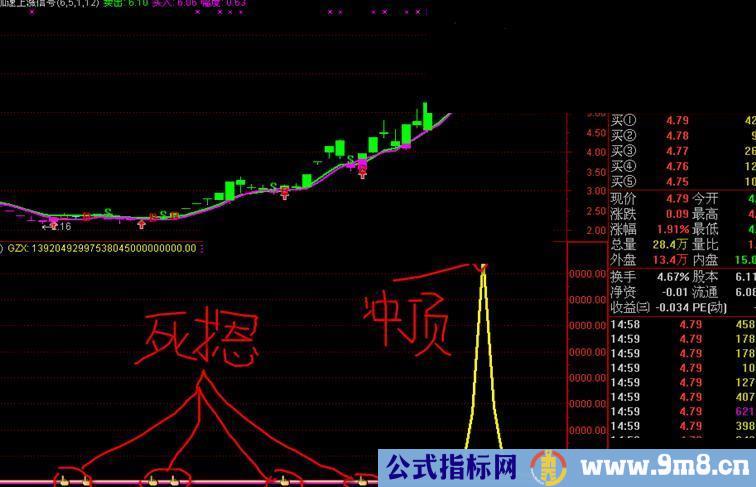 本指标特点:买在波段低点,卖在波段高点,能抓获大牛股。