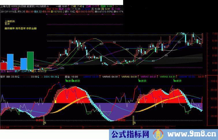 拉升:=IF(CROSS(VARC,生命) AND VARC>VARD AND VARC<55 AND C>O,9,0),STICK,COLORRED,LINETHICK2;