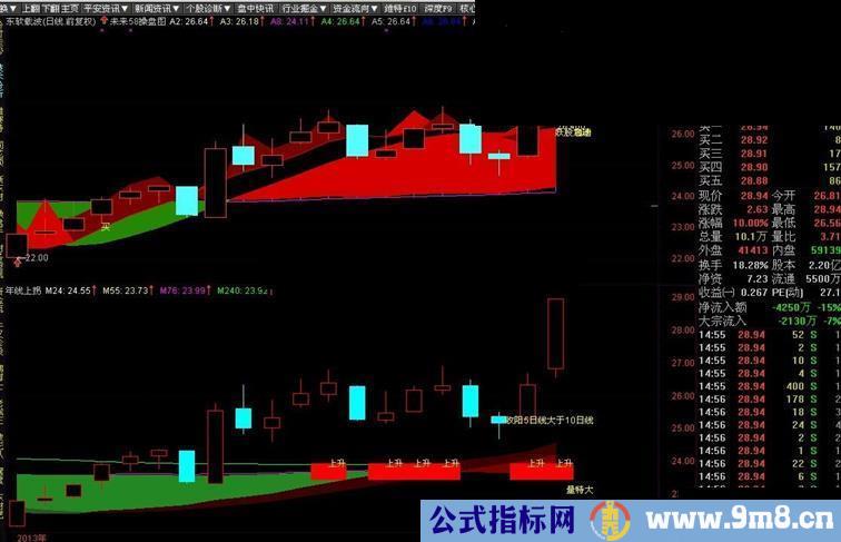 DRAWTEXT_FIX(CURRBARSCOUNT=1 AND B3=30,0.9,0.8,1,'量特大'),COLORYELLOW;