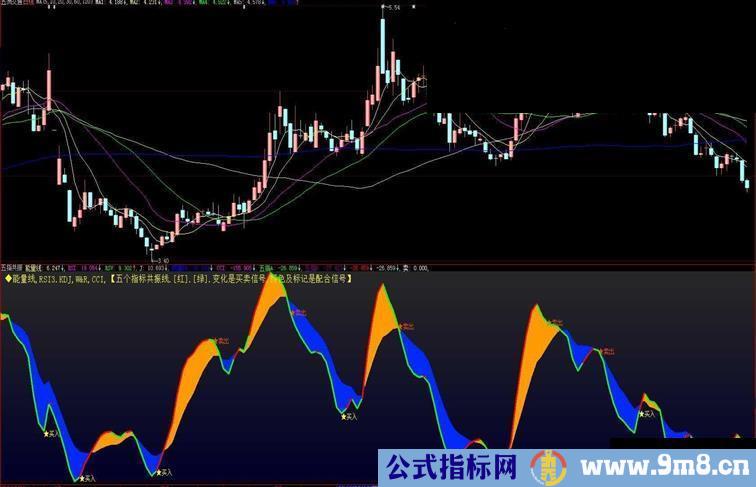 ◆能量线,RSI.KDJ,W&R,CCI,【五个指标共振线.[红].[绿].变化是买卖信号.颜色及标记是配合信号】---------------不过买不买.卖不卖.还是你说了算.公式仅仅是参谋而已.你的炒股【悟性】来源于你的炒股经验.理念.不是公式所能替代的.不要指望公式包办一切.就连K线仅仅是表示过去的历史.K线也是人编造出来的.【当然不是你我】是谁你早就猜到了.不是吗.