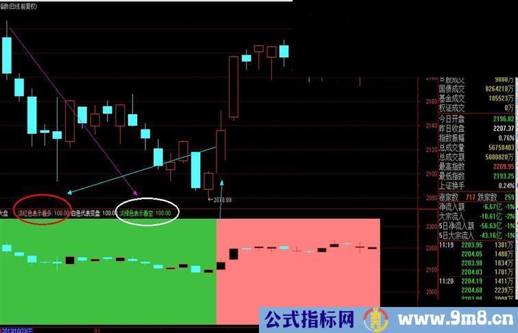 淡红色表示看多:100,COLORLIRED,NODRAW;