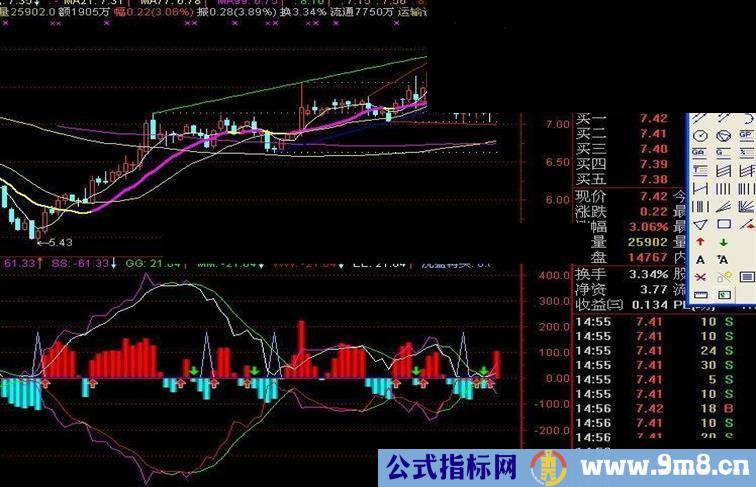 众赢BBD:EMA(总0,3)/SUM(VOL,5)*600,LINETHICK;