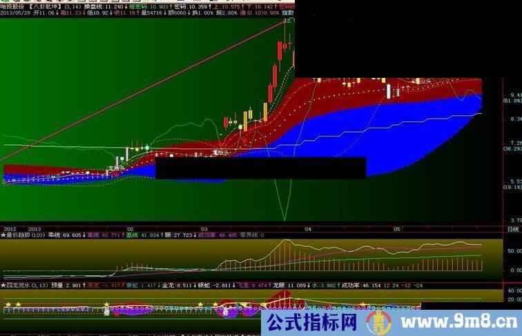 此指标编写有三点创意,一是以K线重心与均价的平均值为基本因子;二是对量比取值为短中长的平均;三是以量比取拐点计算折价乖离线。用法不说了请自己领悟。发完此指标后继续潜水。