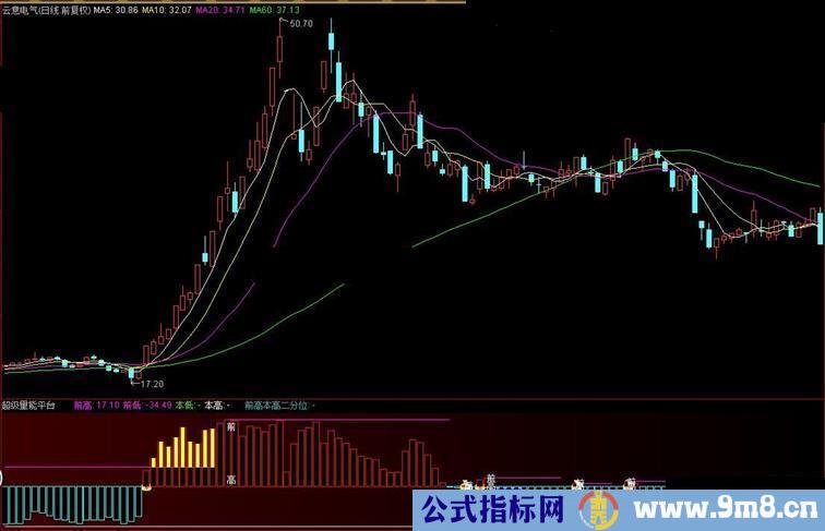 前高:DRAWLINE(VA2,量能正负,REF(VA2,1),REF(量能正负,1),1),COLORMAGENTA;