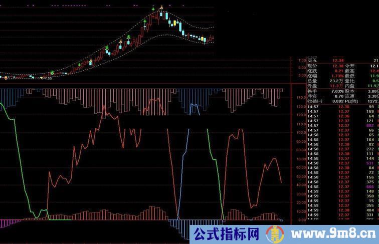 DIF负:IF("MACD.DIF"(12,26,9)<0,兰柱线,DRAWNULL),COLORGREEN,LINETHICK2;