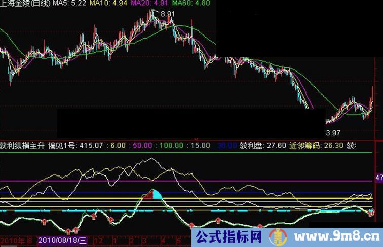 获利纵横2:EMA((获利盘-近邻筹码),5),LINETHICK1;