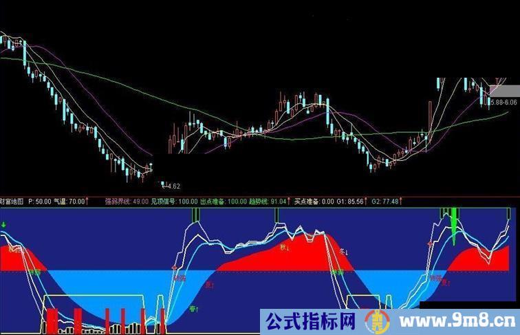 DRAWTEXT(CROSS(49,趋势线),52,'转弱'),COLORGREEN;