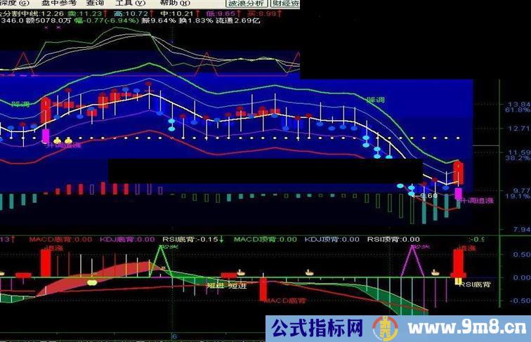 上中:=IF(1=1,低0+KJ*0.618,DRAWNULL),COLORMAGENTA,NODRAW;