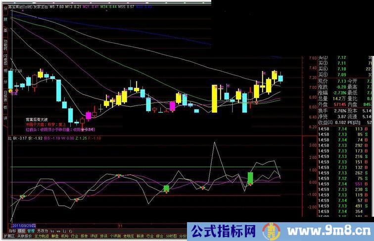 STICKLINE(CROSS(BI,价) ,BI,价,3,0),COLOR32CD32 ;