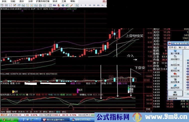 强势:IF(快>慢,快,DRAWNULL),LINETHICK2,COLORRED;