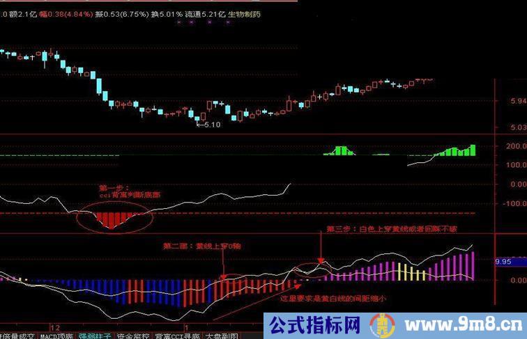 强弱值:=MA(个股-大盘,2),COLORSTICK;