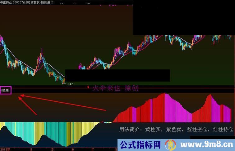 黄色买入,紫色卖出,红色持股,蓝色持币。