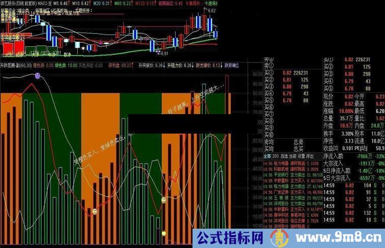 DRAWICON(FILTER(J>REF(J,1)AND 走势>=REF(走势,1)AND 走势<25 ,5),走势,5);