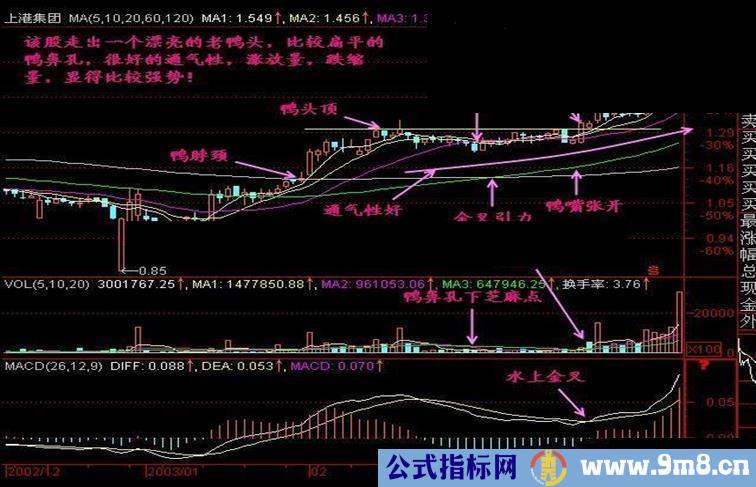 小结:老鸭头是广通经典之一,老鸭头其实就是庄家建仓、洗盘、拉升的一系列动作的组合,只要把老鸭头学好,每年在股市里面找几个买入是不成问题