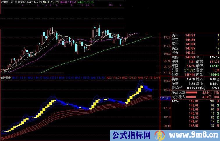 再次分享个指标黄持蓝走,顾名思义就是黄颜色站稳就可以持股,蓝色站稳就别犹豫暂时出局,很简单,很直观,绝无任何未来