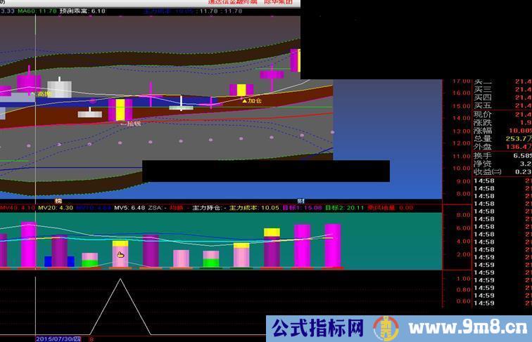 今天收获二个板一个近板收益,高兴就发个小指标:乘风小量坑,此指标是从我的换手率指标中抽出信号点,论坛的人不就是喜欢直观的吗?