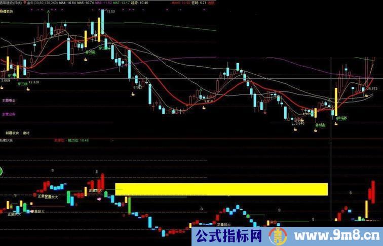 DRAWTEXT(C>REF(C,1)*1.02 AND V/REF(MA(V,5),1)>2,L*0.98,'正量放大'),COLORYELLOW;