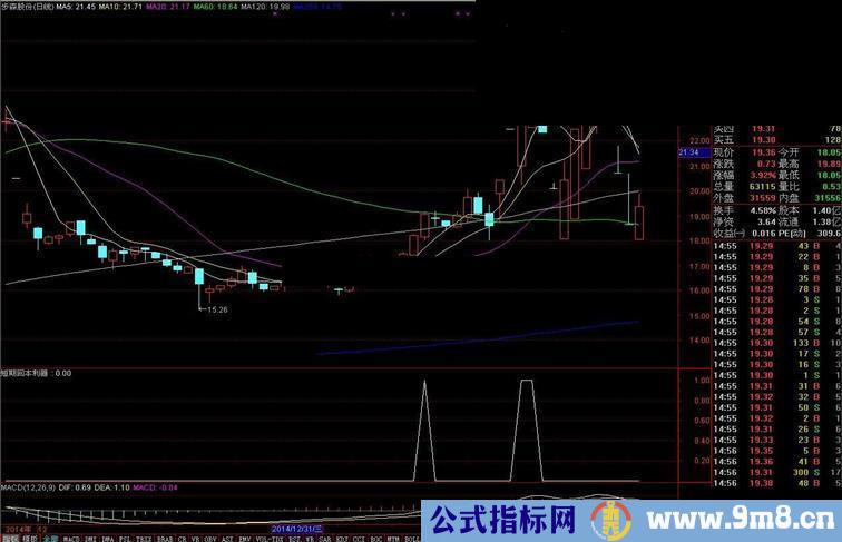 股灾已成过去,当下应沉着应对反弹,关注过我的朋友们都知道,我喜欢做强势股,快进快出的哪种,此波大跌(6月15日到7月15日)期间,个人账户实在增值15%,目前个人认为股市投机气氛浓,一直按纪律快进快出,专做强势股,今天给家发一个短线指标,源码,无未来函数,希望对大家短线炒股有用