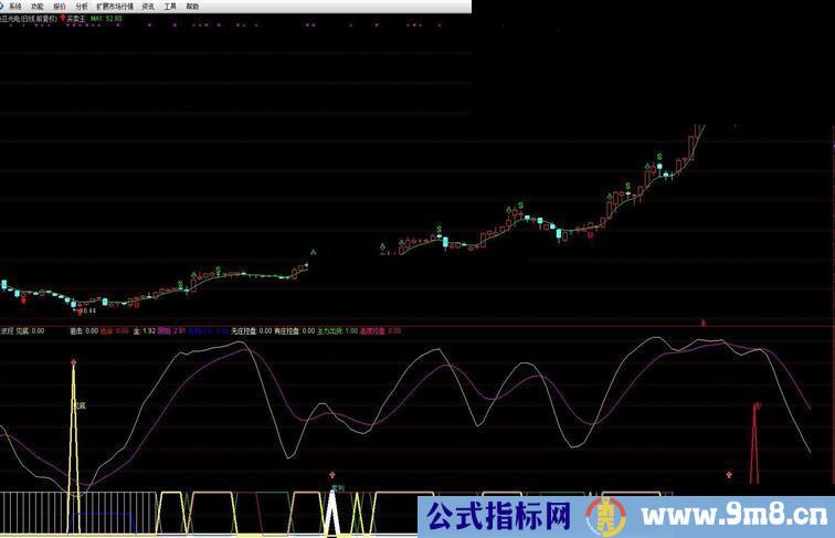 枪:=TROUGHBARS(3,5,1)<1 AND XX 短1:=IF(枪>0,0.4,0),STICK,COLORF0F000,LINETHICK4; DRAWICON(短1>0,1.4,1 ); DRAWTEXT(短1>0,1.1,'套利'),COLORLIBLUE; 短2:=CROSS(XX,AA) AND TROUGHBARS(3,7,1)<1; DRAWICON(短2>0,1.4,1 ); DRAWTEXT(短2,2.5,'小牛'),COLORWHITE; 狙击:短 OR 短1 OR 短2,COLORWHITE,LINETHICK9; VAR12:=PEAKBARS(3,15,1)<10; VAR13:=IF(VAR12=1,2,0); 顶:= IF(VAR13=2,2,0); 逃命:IF(顶>REF(顶,1),3,0),COLORRED,LINETHICK2; DRAWTEXT(逃命=3,3,'逃!'),COLORRED; RSV:= (CLOSE-LLV(LOW,9))/(HHV(HIGH,9)-LLV(LOW,9))*5; FASTK:=SMA(RSV,3,1); 金:SMA(FASTK,3,1),COLORLIGREEN,COLORYELLOW; 阴阳:SMA(金,5,1),COLORLICYAN,COLORMAGENTA; VAR14:=TROUGHBARS(3,15,1)<10; VAR15:=IF(VAR14=1,50,0); 底部:=IF(VAR15=50,10,0); 机构介入:底部/20,LINETHICK2 ,COLORBLUE; VAR16:=EMA(EMA(CLOSE,13),13); 控盘:= (VAR16-REF(VAR16,1))/REF(VAR16,1)*1000,COLORFFCCCC,POINTDOT; 无庄控盘:控盘<0,LINESTICK; 有庄控盘: 控盘>REF(控盘,1) AND 控盘>0,LINETHICK3; VAR17:=100*WINNER(CLOSE*0.95); 主力出货: 控盘0,COLORGREEN; 高度控盘: VAR17>50 AND COST(85)