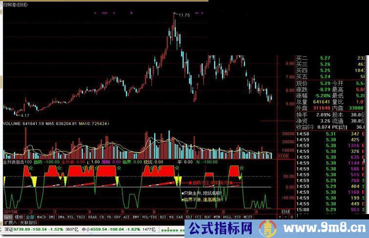 临界:IF(CROSS(98,趋势),1,0),COLOR00FF00,POINTDOT,NODRAW;
