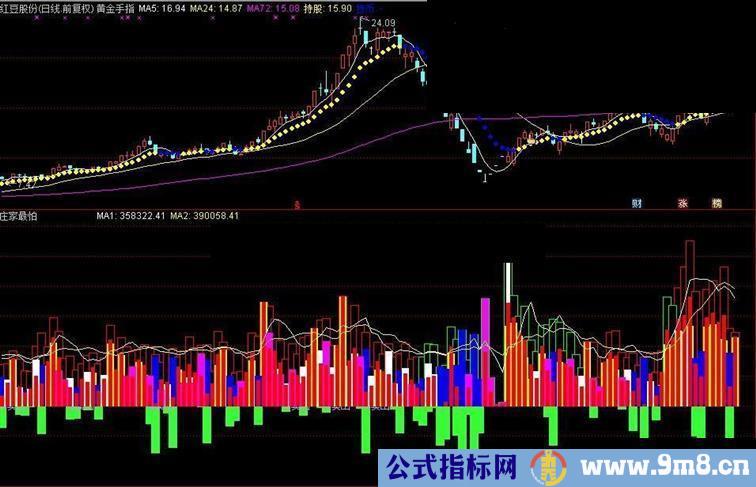 巨量绿,蓝烛长,趋势破,急离场;等着跌,莫手痒。