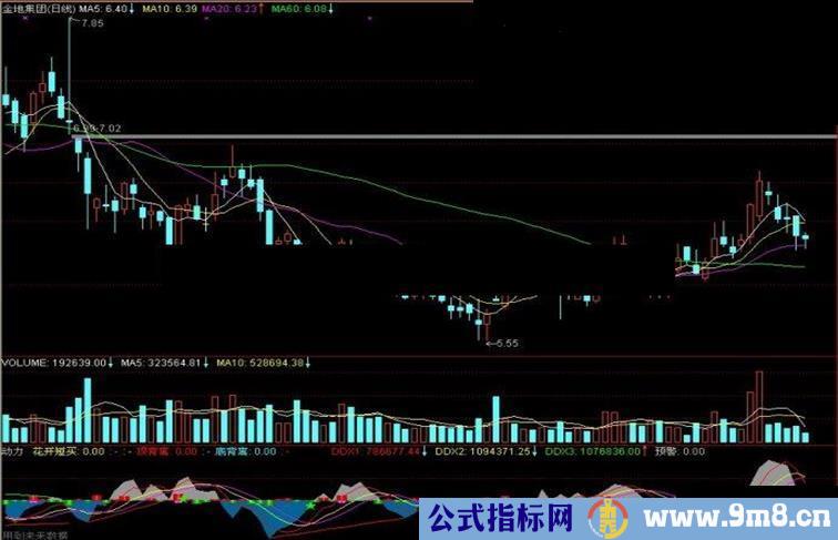 预警:DDX>0 AND MA(V,5)>MA(MA(V,5),5) AND CROSS(DDX1,DDX2),LINETHICK;