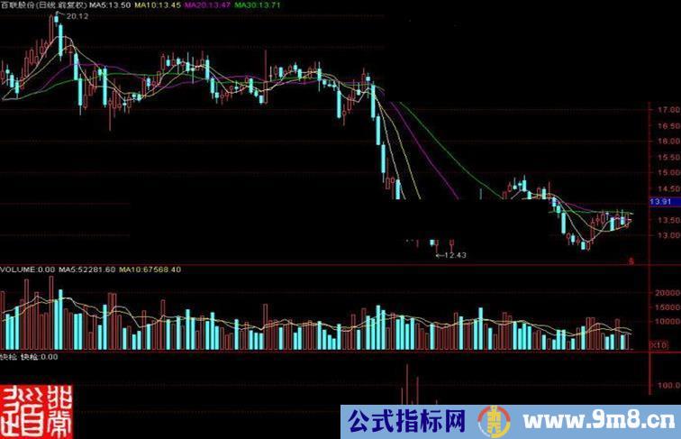 快枪:EMA(IF(LOW<=VARE,(VARD+VARF*2)/2,0),3)/618*VAR10,COLORSTICK;