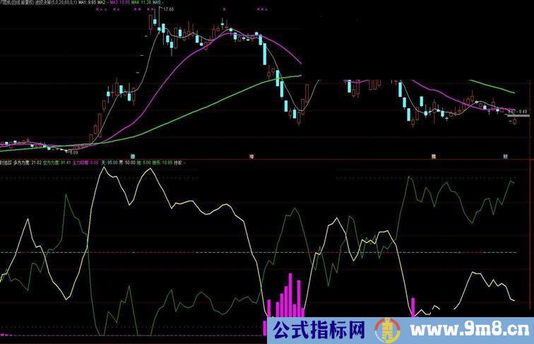 多方力度:(3*SMA((CLOSE-LLV(LOW,27))/(HHV(HIGH,27)-LLV(LOW,27))*100,5,1)-2*SMA(SMA((CLOSE-LLV(LOW,27))/(HHV(HIGH,27)-LLV(LOW,27))*100,5,1),3,1)),COLOR00FFFF,LINETHICK2;