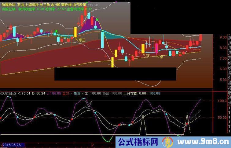 金叉:IF(CROSS(J,K),K,DRAWNULL),CIRCLEDOT,COLORRED,LINETHICK2;