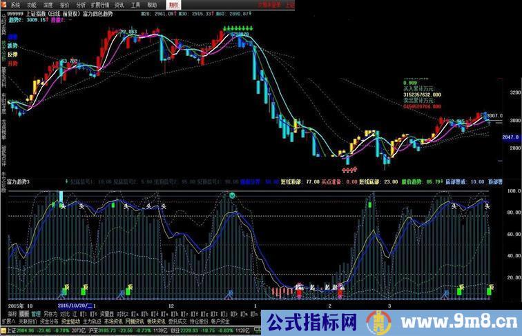 短期底部:=CROSS(趋势,见底),COLORRED;