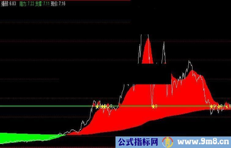 {吸}DRAWTEXT(LONGCROSS(现价,阻力,2),现价,'★'),COLORRED;