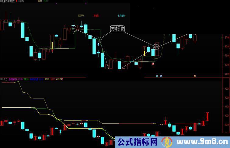 IF(突破获支撑 AND K2=1,突破获支撑,DRAWNULL),COLORYELLOW;
