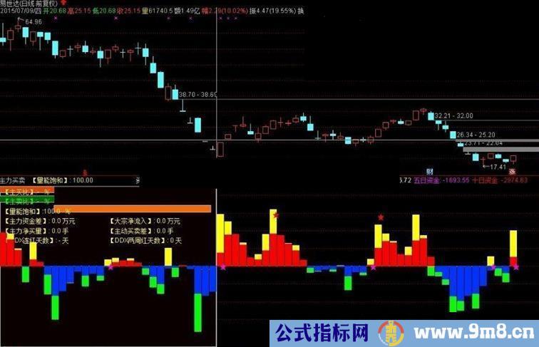 资金净进出:IF((HSL*0.4+LLJX)>0,资金流入,资金流出),COLORWHITE,POINTDOT;