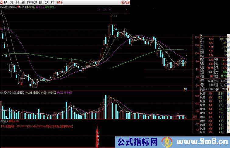 本指标是自己的实战指标,每次自己会根据预警情况结合自己的盘感买入,在其他实战指标没有好的标的股票的时候,常会在2:30后从里面选择一只票进行买入,每次短线波段都有一定的收益。真不知道这个指标发出去后,用的人多了,会不会失效了