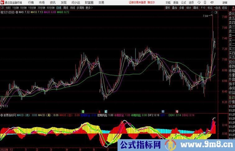 中期安全:MACD(周)>REF(MACD(周),1) AND MACD(月)>REF(MACD(月),1),NODRAW,COLOR9900FF;