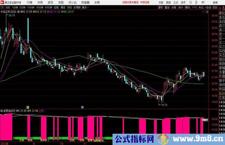 STICKLINE(上升,0,REF(C,1),3,0),COLORLIMAGENTA;