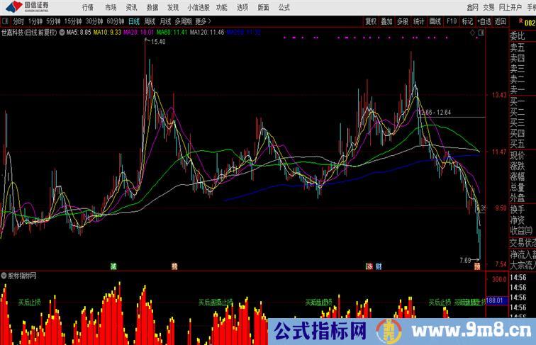 DRAWTEXT(REF((M=0 AND B>M),1) AND A< REF(A,1),200,'买后止损'),COLORLIGREEN;