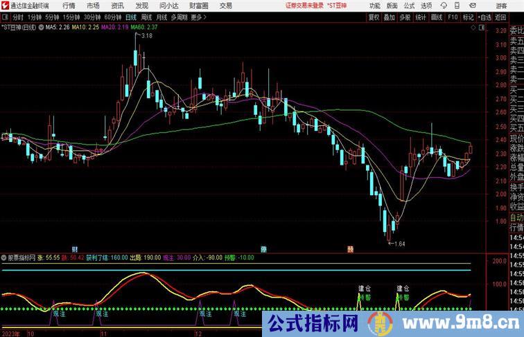 DRAWTEXT(涨>160 AND REF(涨,1)<160,80,'获 利'),coloryellow;
