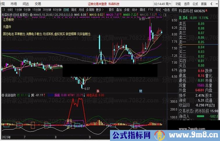绝佳买点:IF(C=C,MA(IF(LOW<=VARF10,(VARFF+VARF11*2)/2,0),3),100000000)/(200),COLORRED,LINETHICK2;