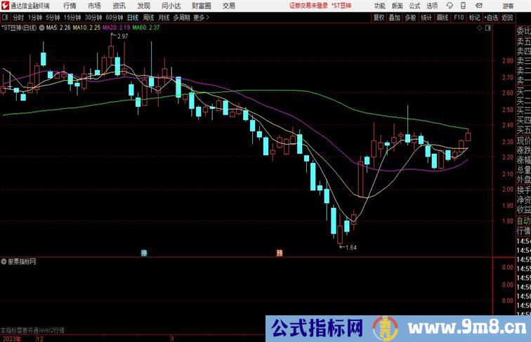 STICKLINE(资金流向<0,0,资金流向,2,0),COLORCYAN;