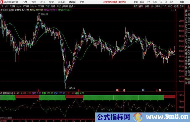 势:EMA(MA势,5),COLORLIRED,DOTLINE;