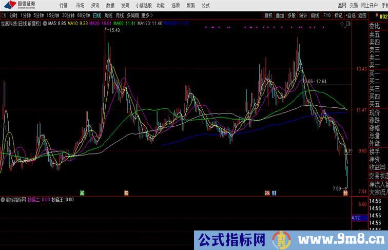 抄底二:IF(乖离< -18,3,0),COLORFF35FF,LINETHICK1;
