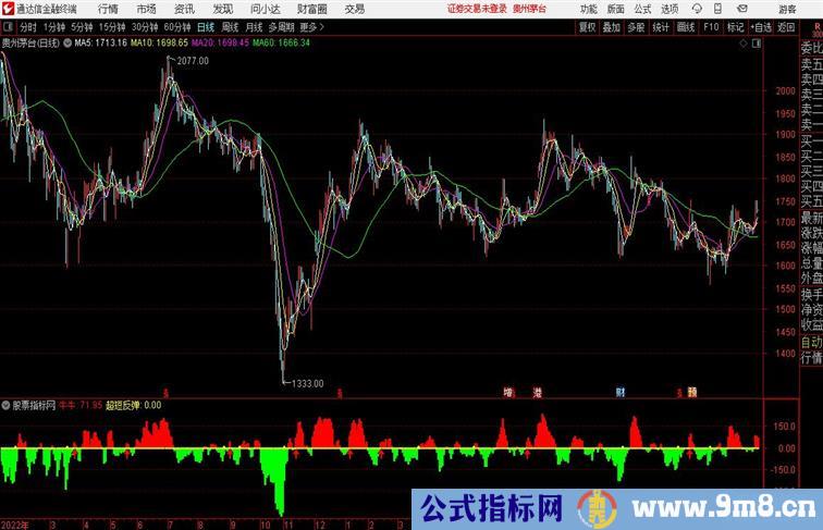 个股:=EMA(100*(C-LLV(LOW,34))/(HHV(H,34)-LLV(LOW,34)),3),COLOR1010FF;