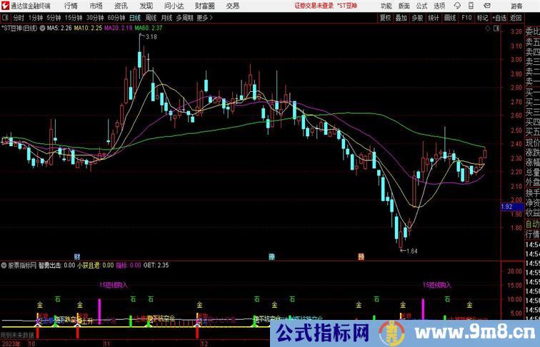 小获且退: ZIG(3,10)< REF(ZIG(3,10),1) AND REF(ZIG(3,10),1)>REF(ZIG (3,10),2),COLORYELLOW,LINETHICK2;